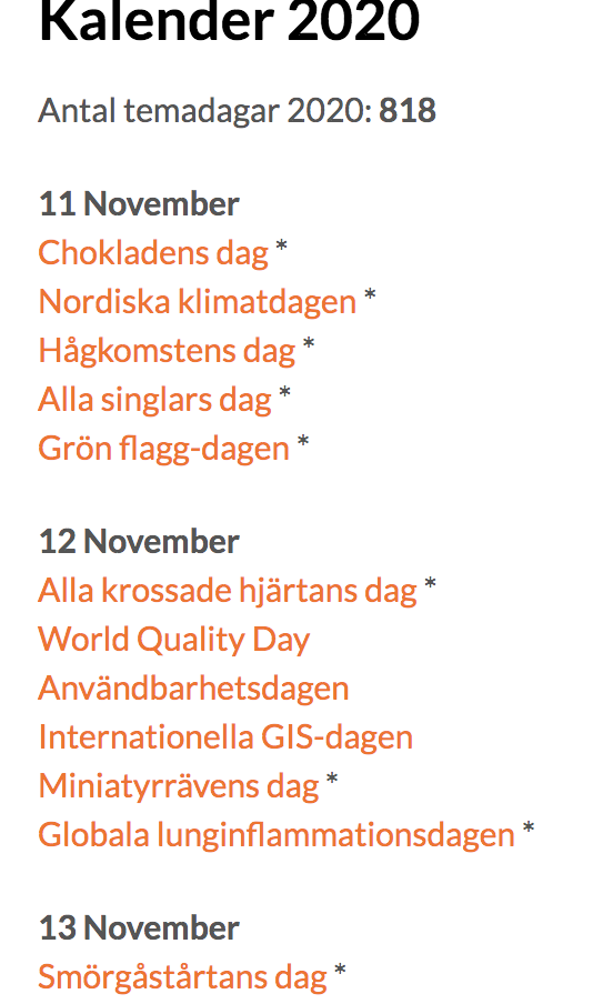 Liten grej till är att jag håller på att göra en video där jag lever efter temadagarna… Har ni en temadag ni skulle vilja lägga till i temadags-kalendern förresten? Idag är det ju alla singlars dag och imorgon alla brustna hjärtas dag. Känner att det inte kan va en slump att de är på rad. VEM BESTÄMMER dessa dagar????